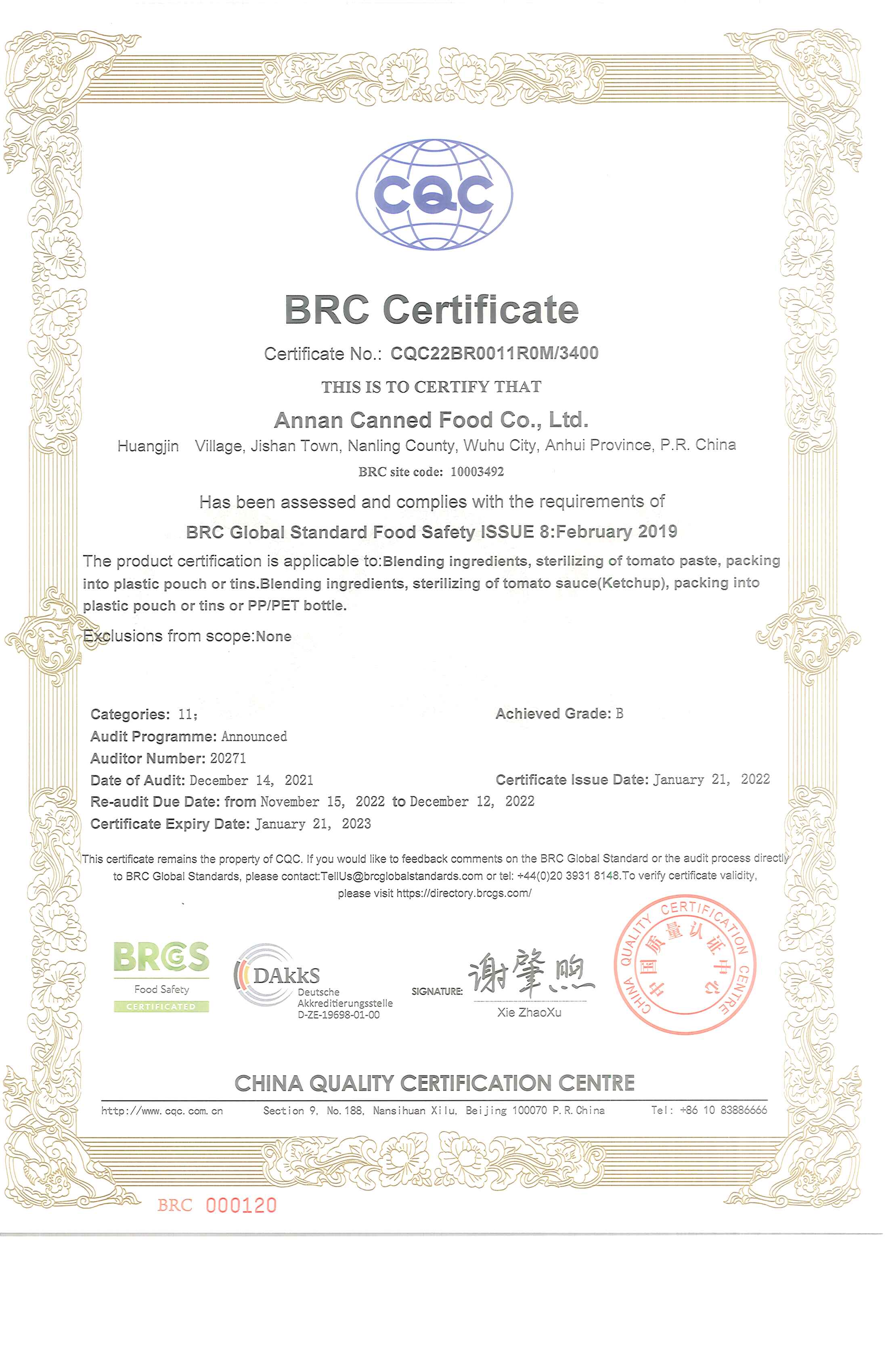 安南公司位于安徽省蕪湖市南陵縣籍山鎮(zhèn)黃金村,廠區(qū)緊鄰205國道,離蕪湖口岸50公里,南京口岸110公里,交通便捷。公司以加工系列番茄醬產(chǎn)品為主,袋裝、罐裝、瓶裝,規(guī)格齊全;番茄醬、番茄沙司、KETCHUP,品種繁多;產(chǎn)品暢銷非洲、中東、中北美及南美、東南亞等國家和地區(qū)。公司通過ISO9001、HACCP、BRC質(zhì)量管理體系認(rèn)證,HALAL、KOSHER、ZFDA等產(chǎn)品認(rèn)證,部分產(chǎn)品在美國FDA登記注冊(cè)。